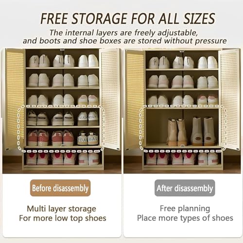 Super Sturdy and More Durable — Our shoe cabinet for entryway is made of high-quality MDF, easy to clean with a damp cloth. it’s going to last to come for years and can bear up to 200 lbs