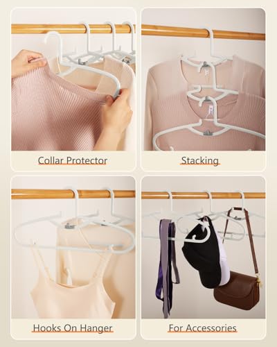 【Space Saving】With plastic clothes hangers,U ll have FOUR times MORE closet space by the use of this white plastic hangerswith vertical hanging mode,For coat hangers for closet as well.