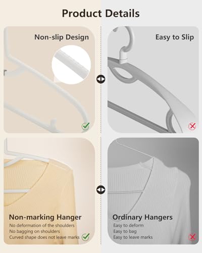 【Strong & Non-slip】Load-bearing for 5KG & Strip design within the surface to forestall clothing from falling off. No slip hangers 20 Pack, No shoulder bump hangers, Non slip hangers.