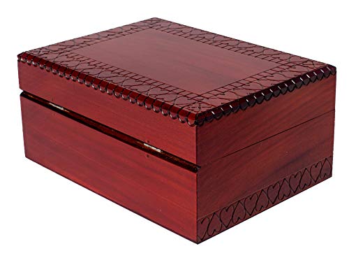 Artisan Owl Polish Handmade Large Trunk 10" Heart Patterned Wooden Box with Lock and Key for Keepsakes, Love Letters, Jewelry, and Specialty Items